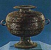 对罍(上面三个田下面一个缶)(lei)是大型的盛酒器,又可盛水,在青铜礼器中占有重要的地位,《诗经.周南.卷耳》中即有“我姑酌彼金罍”之语,《周 礼.春官》载:“凡祭祀…...用大罍。”函皇父簋铭亦云“两罍两壶”,说明罍和壶是容量不同的一组容酒器。罍从商代晚期出现,流行于西周和春秋。罍有方 形和圆形两种,方形罍出现于商代晚期,圆形罍商代和周初都有。